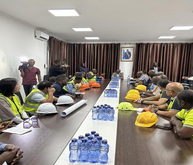 On June 10th, accompanied by General Manager and department heads of the National Water Company, Olivier Mwenze Mukaleng, Minister of Water Resources and Electricity of the Democratic Republic of Congo, inspected the Phase II of the Ozone Water Supply project in the Democratic Republic of Congo. The Minister and his delegation listened to the progress report of the project and visited the under-construction water treatment chemicals storage warehouse, water treatment structures, and clean water tanks. After the visit, the Minister was interviewed by local media and expressed great satisfaction with the progress and construction quality of the Phase II project.