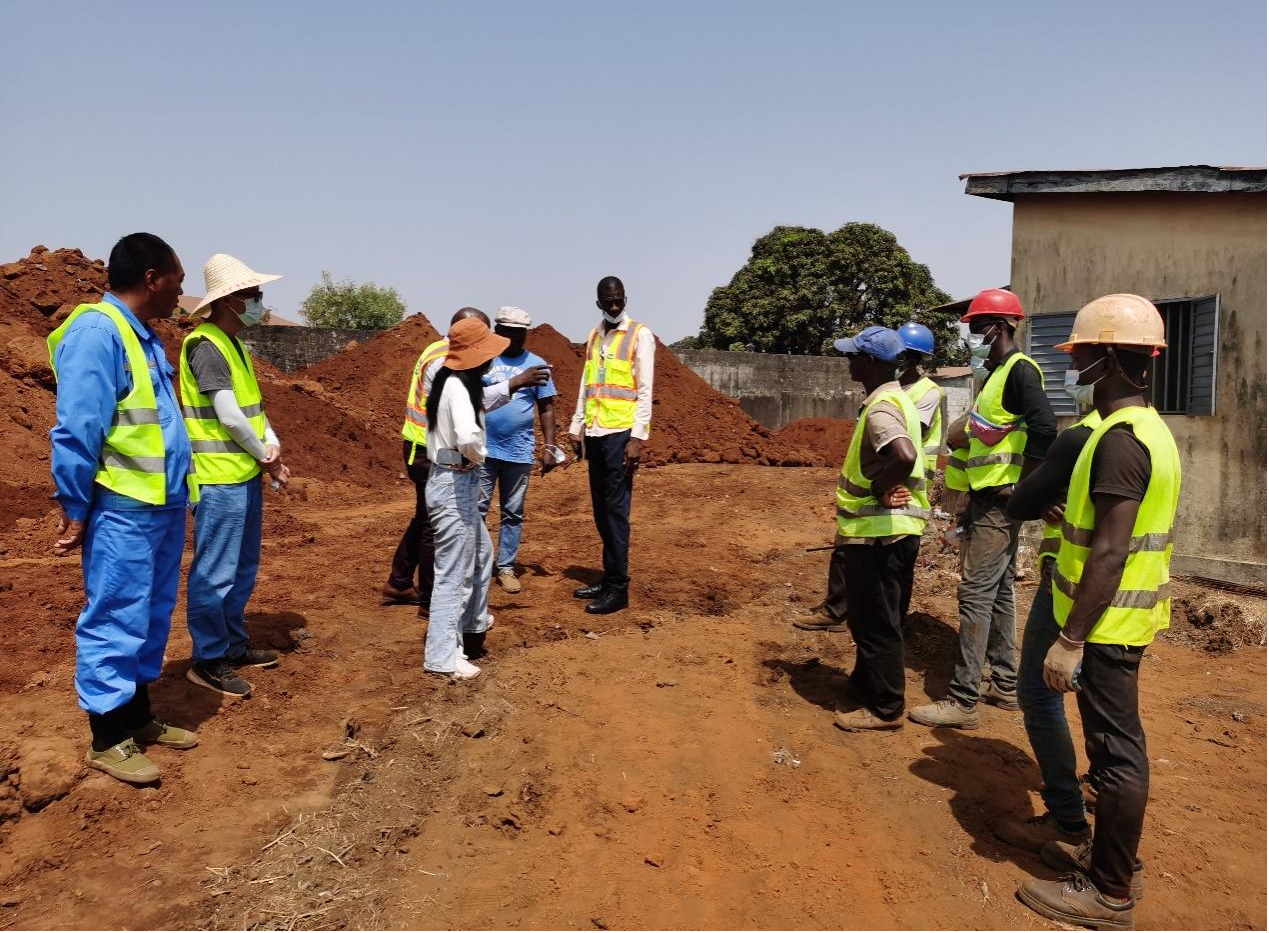 Discussion avec le Ma?tre d'ouvrage guinéen sur les remarques pour la construction de la route de protection contre l'incendie dans la zone de vol