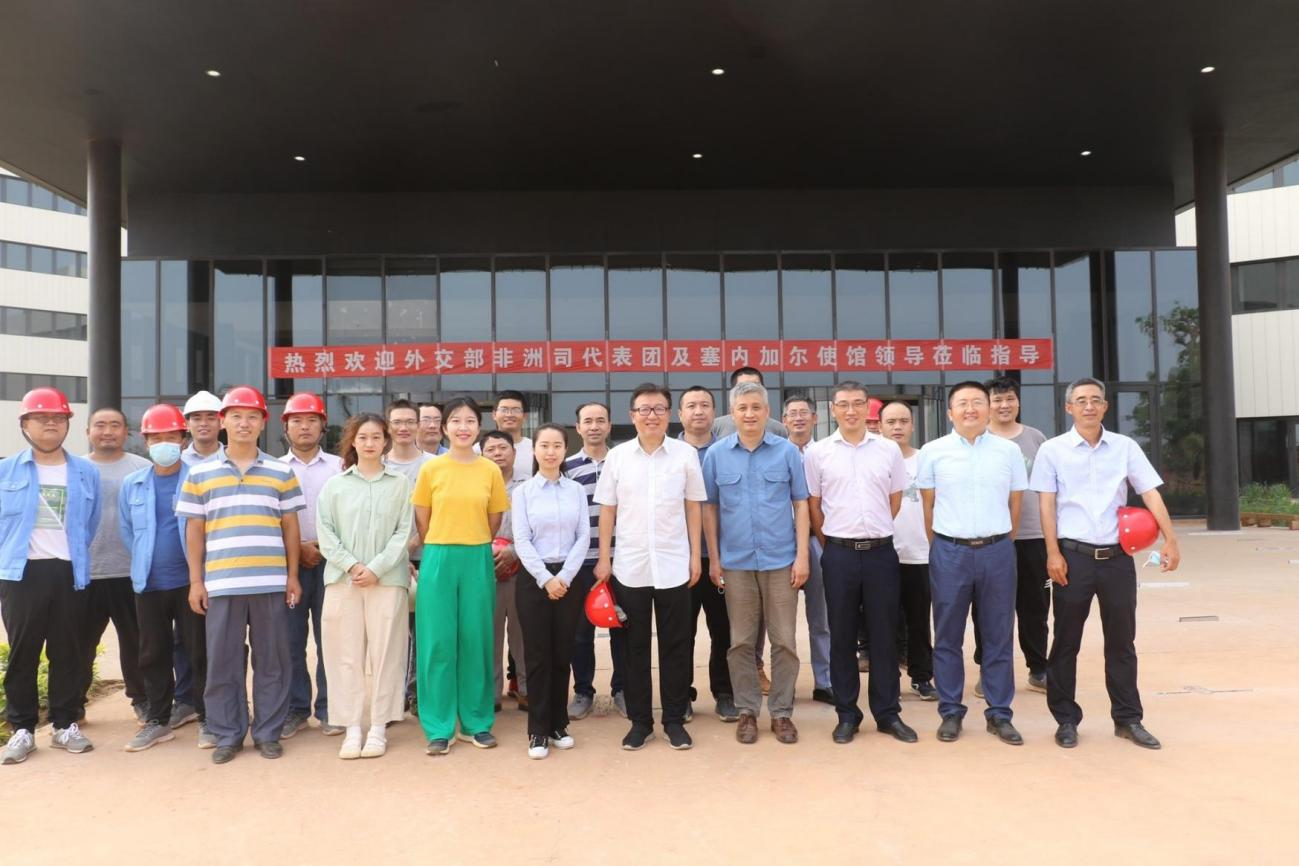 Après la visite, le Directeur WU et l'Ambassadeur XIAO avec la délégation ont pris une photo de groupe avec tous les visiteurs qui les accompagnaient et ont exprimé les salutations cordiales à tous les employés de la société au Sénégal qui restaient à leur poste pendant les épidémies. Les participants au projet ont déclaré qu'ils se tiendraient certainement au dernier quart de travail, achèveraient parfaitement la tache de construction du batiment du bureau des Nations Unies au Sénégal et gagneraient la gloire du pays.