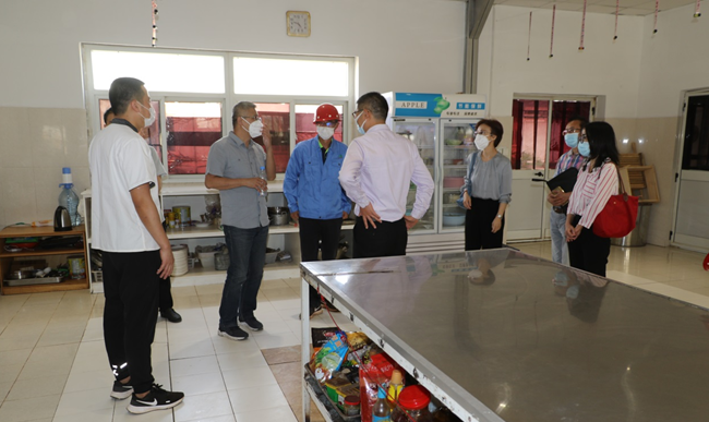肖大使一行は斉攀副総経理、張偉華チーフエンジニアの付き添いで、プロジェクト施工現(xiàn)場(chǎng)と従業(yè)員生活區(qū)を見學(xué)し、プロジェクト管理體制、施工進(jìn)捗、現(xiàn)場(chǎng)人員配置及びコロナ対策などの狀況について報(bào)告を聴取し、プロジェクト実施中に直面している困難を詳しく確かめた。肖大使は同プロジェクトの現(xiàn)場(chǎng)管理、チームづくり、パンデミック対策管理などについて高い評(píng)価を與え、プロジェクトの実施中に直面している國內(nèi)規(guī)格と関連外國規(guī)格の間の差異、サンプル確認(rèn)上の困難などの問題について、中國系他企業(yè)の経験と教訓(xùn)を紹介するとともに、プロジェクト管理レベル向上に向けプロジェクト実施中に経験と教訓(xùn)を蓄積していく重要性を強(qiáng)調(diào)した。