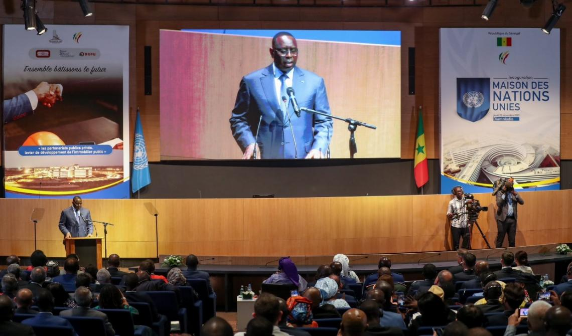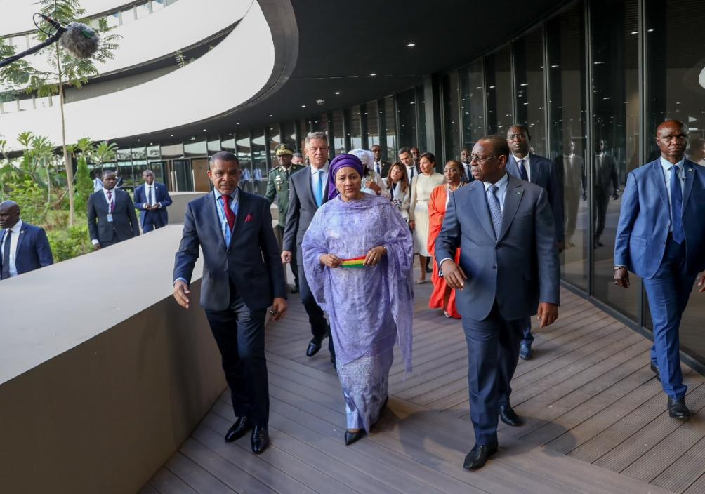 サレ大統(tǒng)領(lǐng)は挨拶で、「これは現(xiàn)代化の建物であり、施設(shè)は國(guó)連の仕事と安全要求における最高の基準(zhǔn)を満たしている。この建物は私たちの國(guó)連戦略への貢獻(xiàn)であり、國(guó)連の異なる実體間のより良い協(xié)同効果を創(chuàng)造し、協(xié)力効率を高めることを目的としている。本件プロジェクトの引渡により、再び國(guó)家の官民パートナーシップ戦略を?qū)g現(xiàn)し、プロジェクト建設(shè)におけるEnvol Immobilier、WIETCなど諸會(huì)社の優(yōu)れた貢獻(xiàn)に心から感謝する」と述べた。