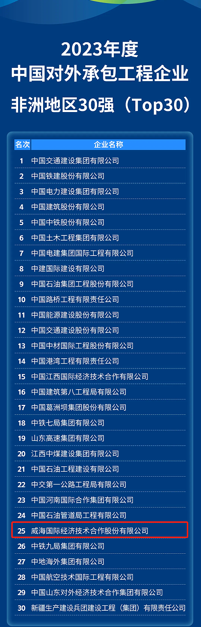 5月7日、2024対外請負(fù)工事業(yè)界発展大會の開催期間中、中國対外請負(fù)工事商會は2023年度中國対外請負(fù)工事企業(yè)に関する複數(shù)のランキングを発表した。會社は中國対外請負(fù)工事企業(yè)ベスト100選(65位)、住宅建設(shè)工事ベスト30選(25位)、アフリカ地區(qū)事業(yè)ベスト30選(25位)に選ばれ、會社の成長続く海外発展力を改めて體現(xiàn)した。