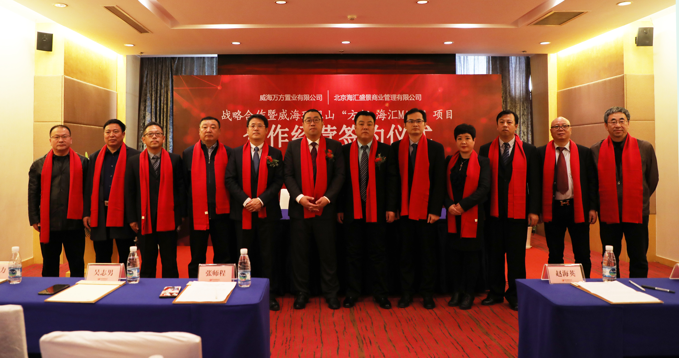 威海國際公司董事長兼總裁張師程、北京海匯盛景商業(yè)管理有限公司總裁趙海英、威海國際公司副總裁兼萬方置業(yè)公司總經理吳志男等20余位領導與嘉賓出席簽約儀式。萬方置業(yè)公司副總經理梁志濤主持簽約儀式。