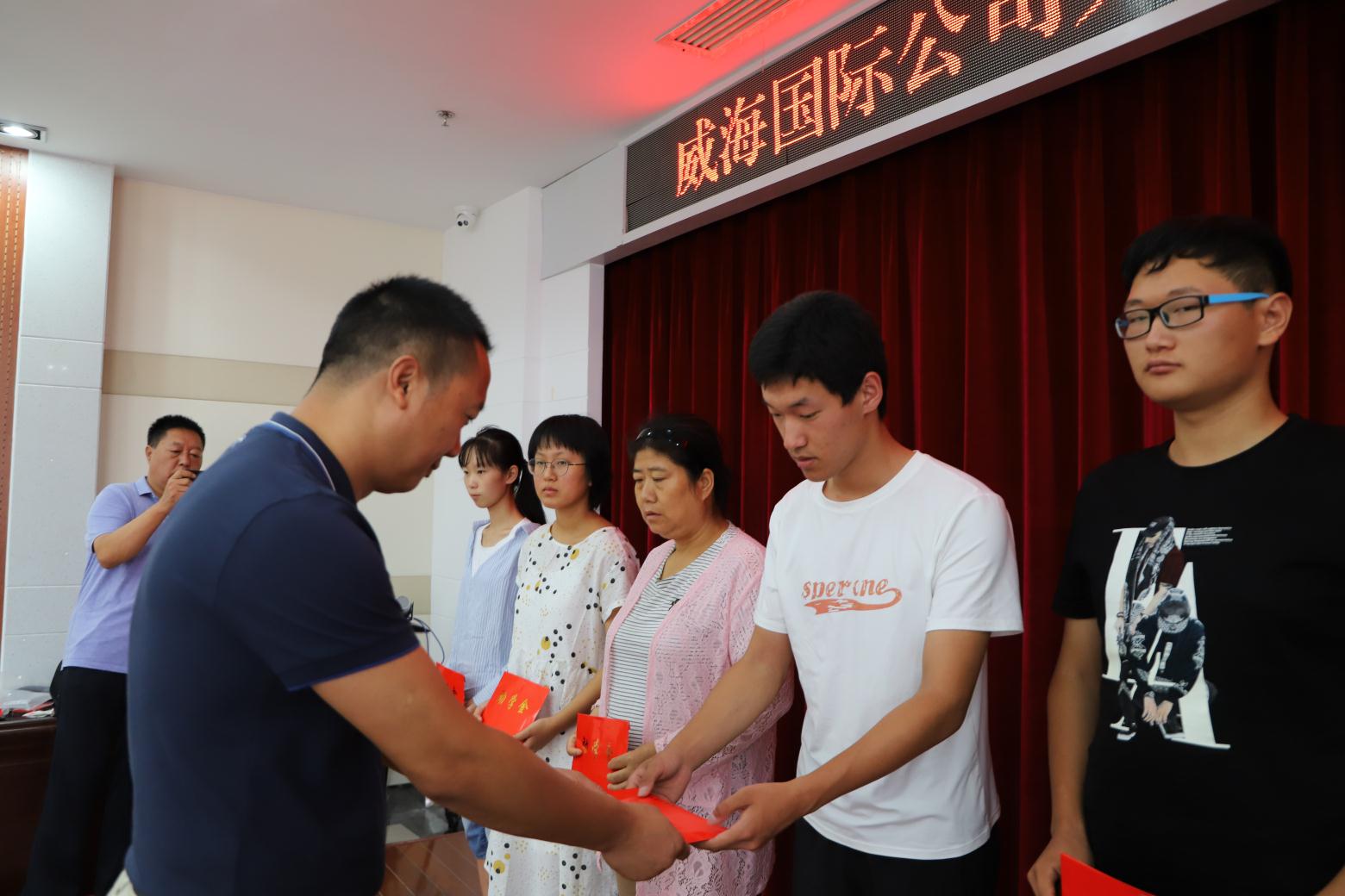 近日,“威海國際慈善愛心基金”助學(xué)儀式在威海市民政局會(huì)議室舉行。威海市慈善總會(huì)副秘書長王明源、公司人力資源總監(jiān)王慷慨向9名受助大學(xué)生發(fā)放了助學(xué)金。