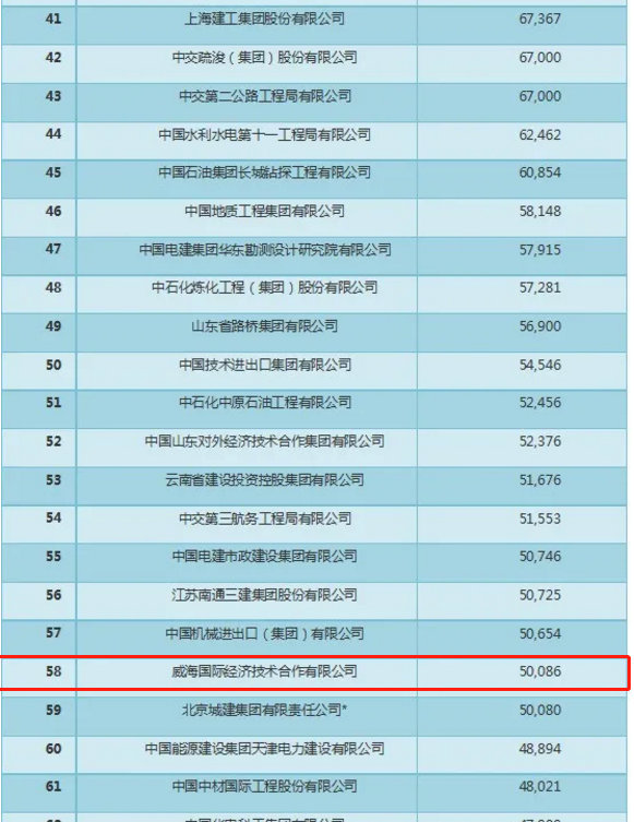 近日,商務部發(fā)布了2020年中國對外承包工程業(yè)務完成營業(yè)額和新簽合同額的100強榜單,我公司分別位居第58名和67名。入圍兩項對外承包工程百強企業(yè)名單,充分顯示了公司在艱難形勢下的韌性和良好的發(fā)展態(tài)勢,同時對提升“威海國際”品牌的影響力和推動業(yè)務的開展具有積極意義。